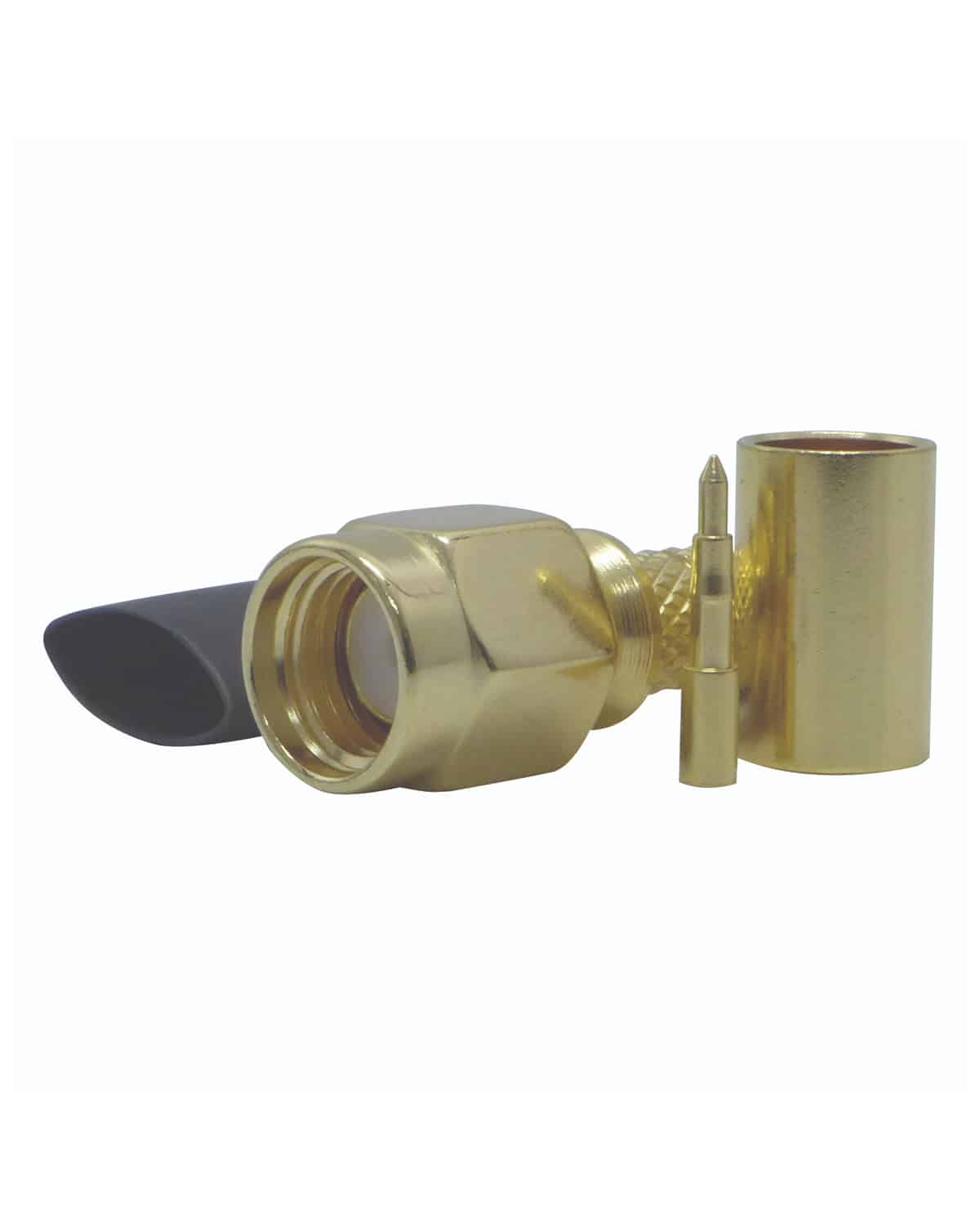 The SMA58 SMA plug is a sub-miniature version A coaxial connector, crimp style 50Ω. Quality Gold-plated brass body, Gold-plated Beryllium Copper centre pin, Nickel-plated crimp using a PTFE dielectric.