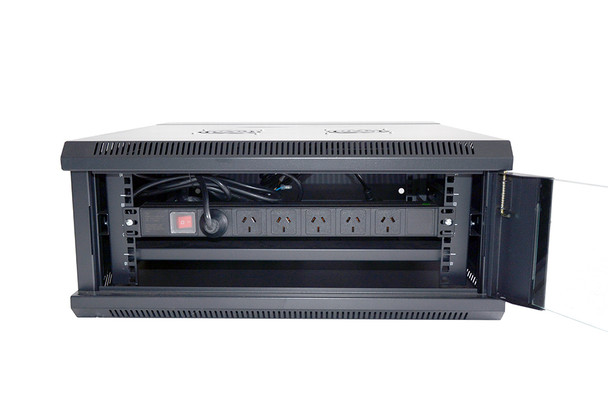 The Datatek 4U 600mm Swing Frame Wall Mount Data Cabinet allows you to swing the whole cabinet out from the wall to allow you to acess the back of the rack.