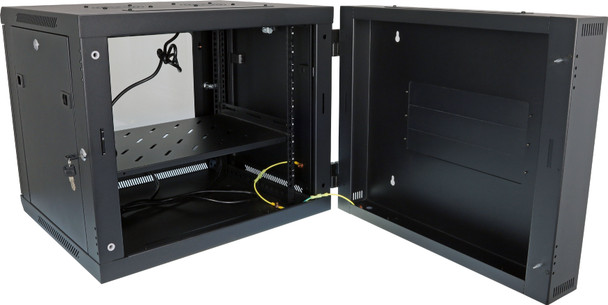 The Datatek 9U 600mm Swing Frame Wall Mount Data Cabinet allows you to swing the whole cabinet out from the wall to allow you to acess the back of the rack.