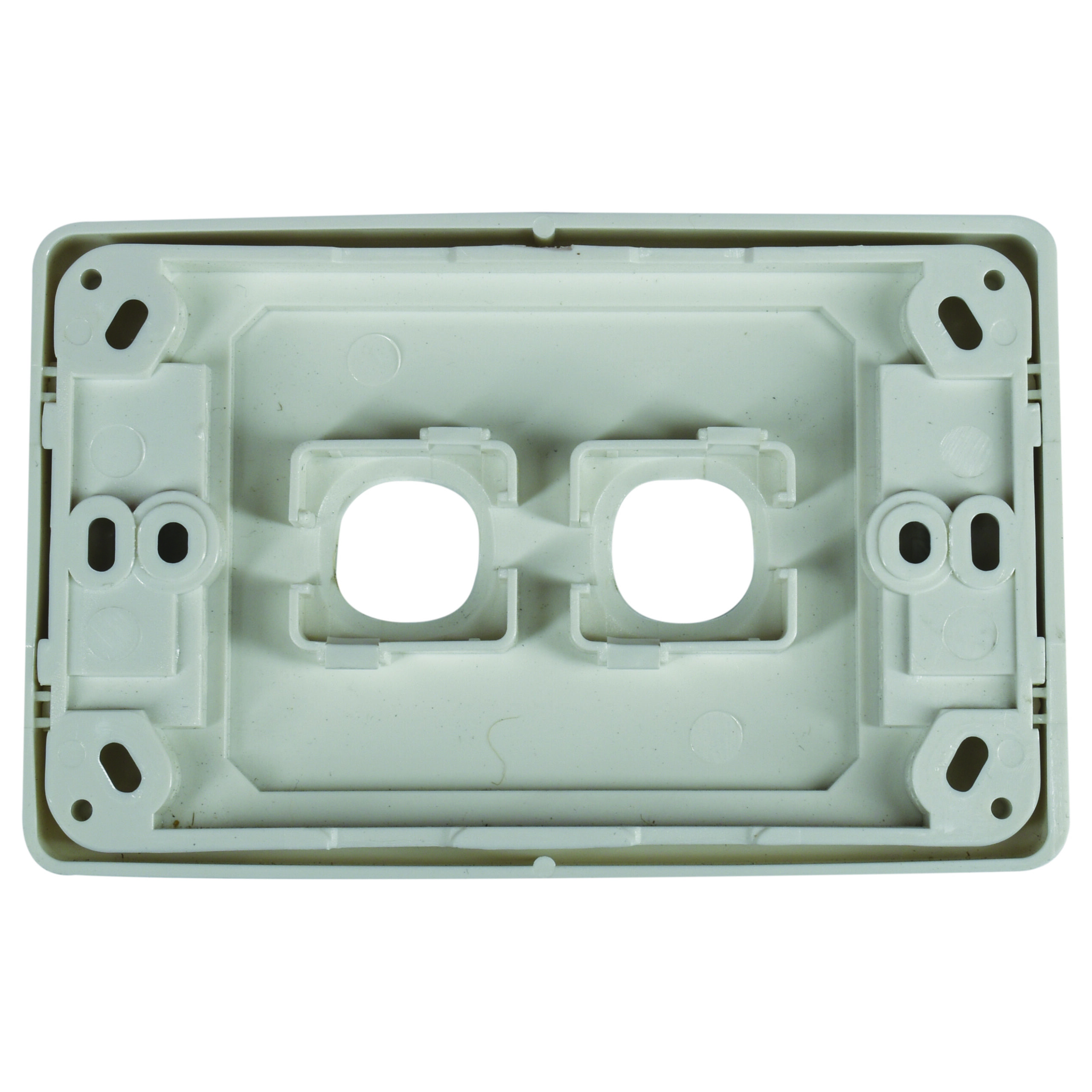 The 05MM-WP52 is a compact design two-way outlet plate offering one blank wall insert. This enables users to connect items to the outlet with ease. The unit also features two mounting screws which can be used for installation purposes. It also has a glossy finish and hides signs of Gyprock installation.