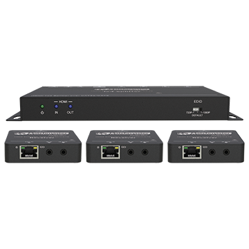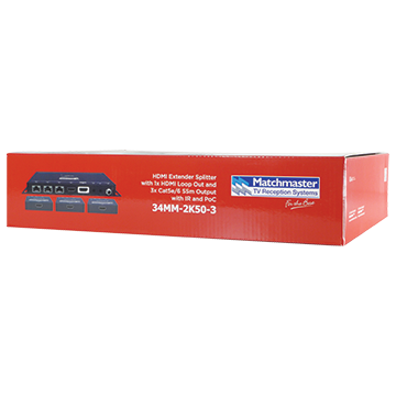 HDMI? Extender Splitter with 1x HDMI input, 1x HDMI? output and 3x CAT5/6 extended outputs with bi-directional IR control and PoC. The 2K50-3 allows you to split your Full HD Standard Speed HDMI? source into three additional displays while keeping your main display connected to the HDMI? loop through.