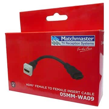 The 05MM-WA09 is an HDMI® wall plate insert with a 115mm cable tail allowing greater flexibility for installation into tight wall cavities. It comes in a four-pack and features a white fitting to blend into standard white wall plates. Each connector is gold plated and covers both 1080p Standard Speed and 4K High Speed HDMI®. The WA09 allows you to take the strain out of connecting HDMI® cables and allows a tidy wall plate fit-off.