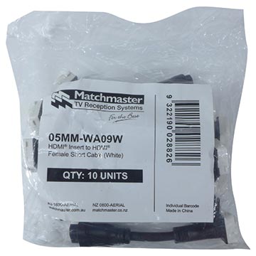 The 05MM-WA09W is an HDMI® wall plate insert with a 115mm cable tail allowing greater flexibility for installation into tight wall cavities. It comes in a ten pack and features a white fitting to blend into standard white wall plates. Each connector is gold plated and covers both 1080p Standard Speed and 4K High Speed HDMI®. The WA09W allows you to take the strain out of connecting HDMI® cables and allows a tidy wall plate fit-off.
