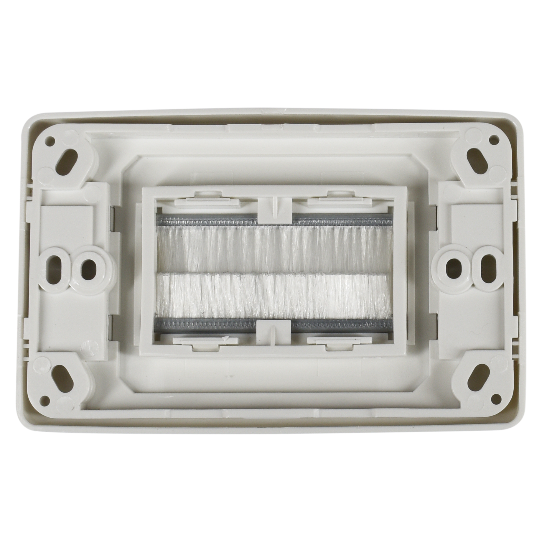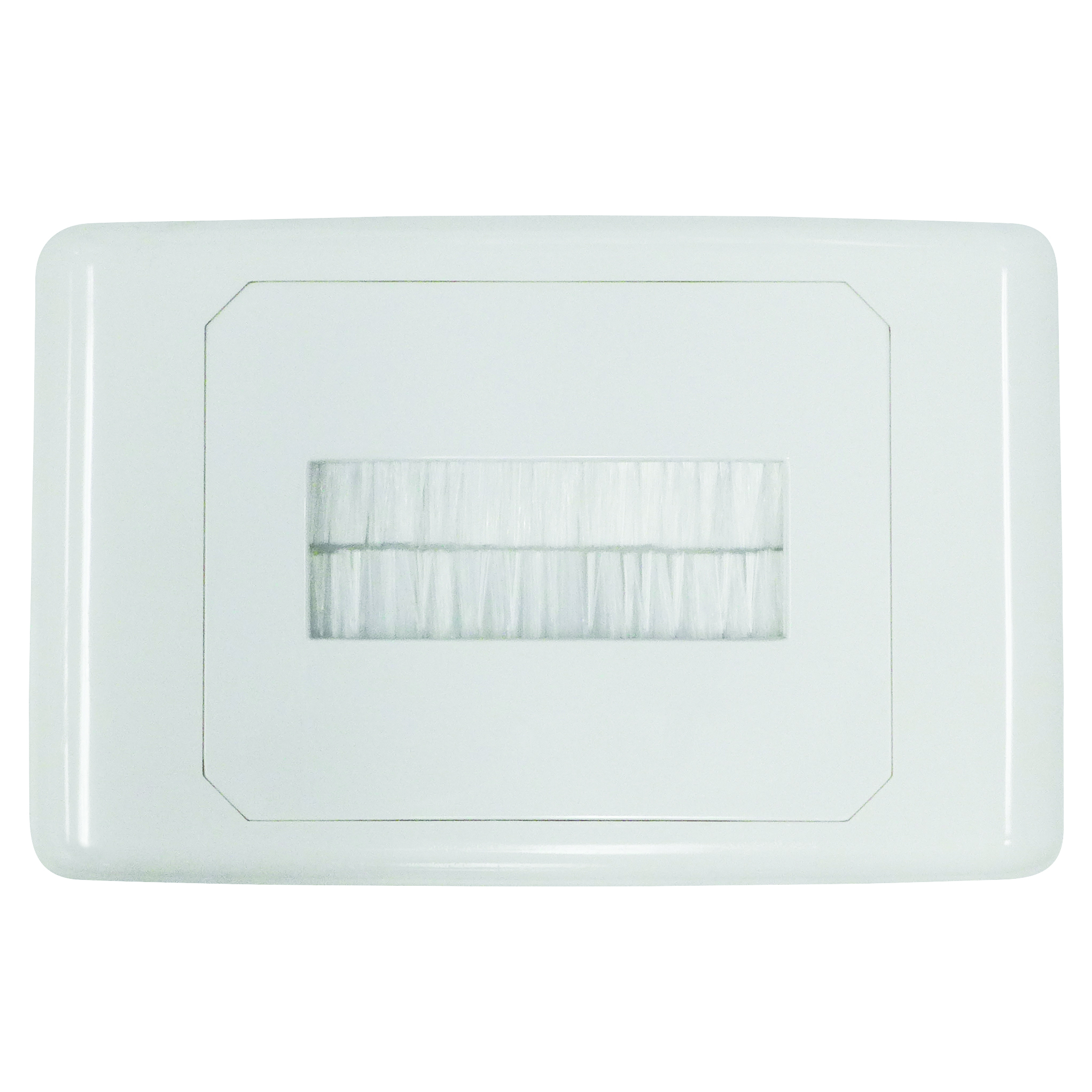The 05MM-WP64 is a discrete cable management outlet plate. This unit features a brush style cover to the wall plate opening, allowing you to run AV, Data and TV cables directly between the source and display. This unit can help you run cables through a wall with ease, with a discrete slimline opening that can accommodate several cables at once while still keeping things neat and organised. It is perfect for use with our RP01/2/3 series recessed wall points to connect wall-mounted TVs with your entertainment system.