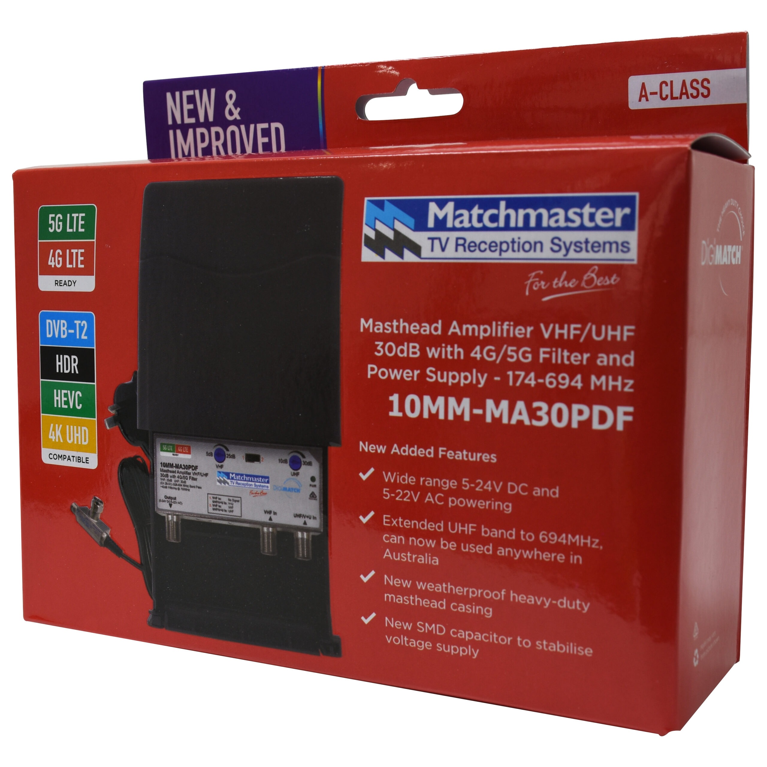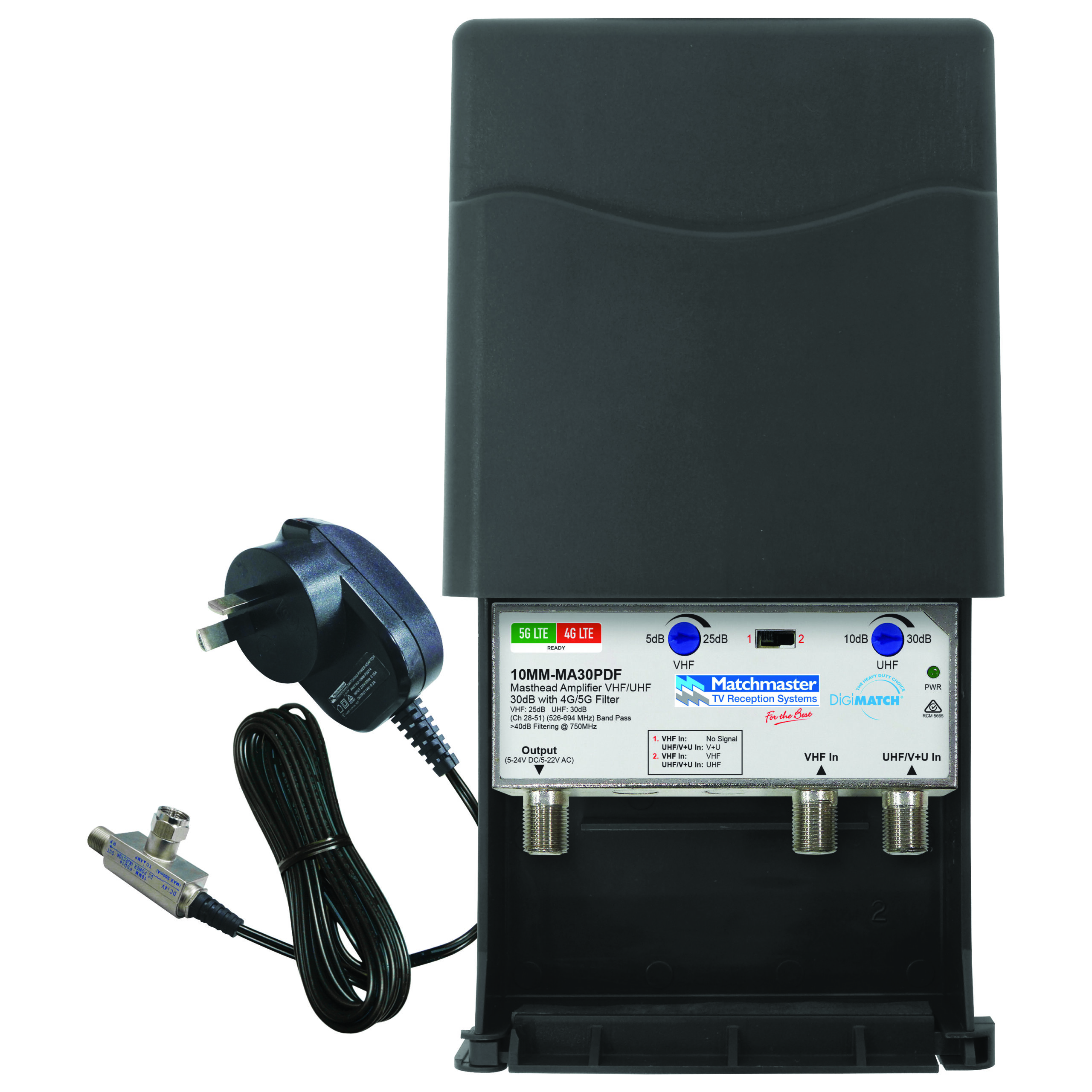 MATCHMASTER Masthead Amplifier VHF/UHF 30dB with 4G/5G 10MM-MA30PDF