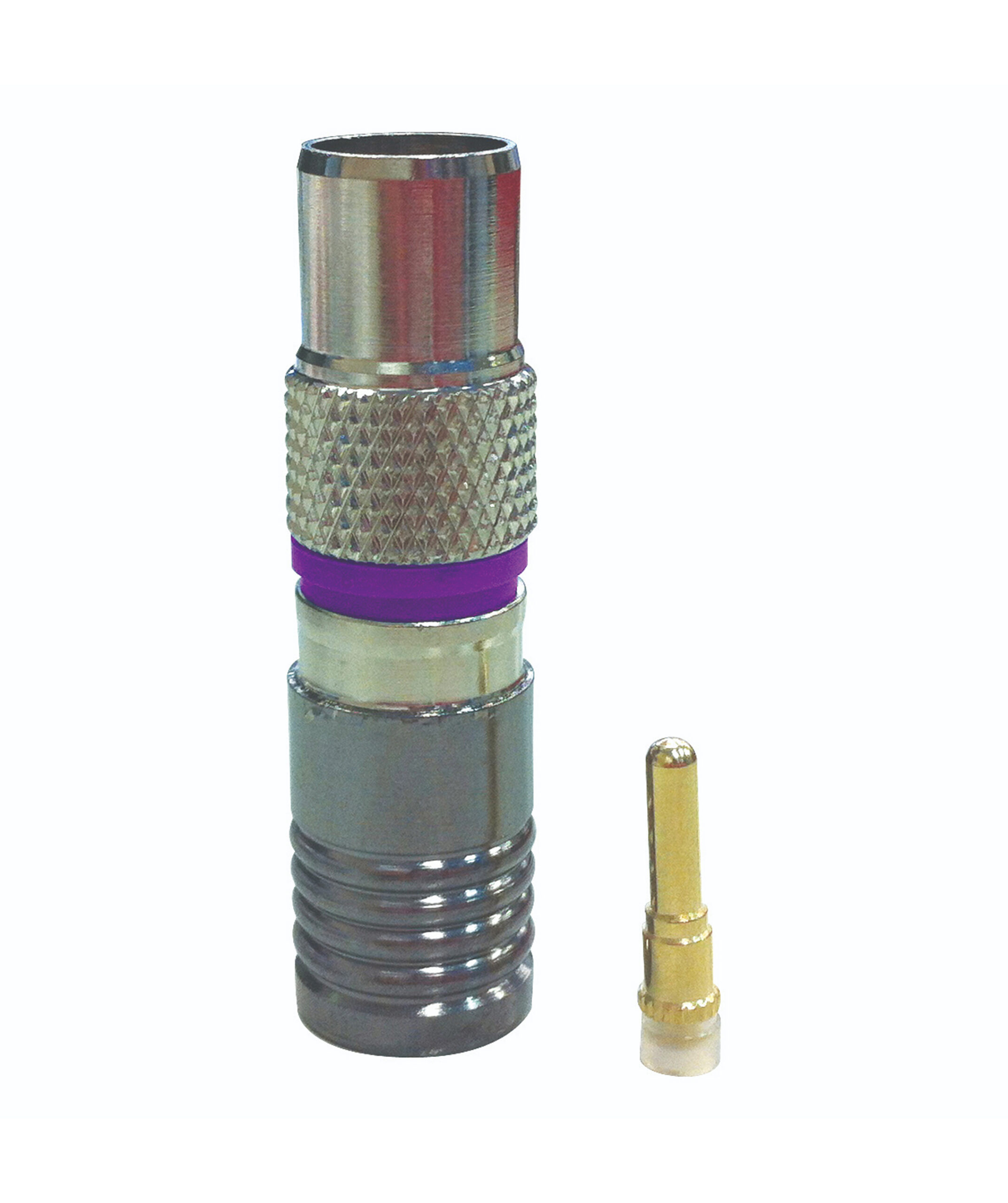 The 08MM-HD59PM is a male compression connector professional IEC (PAL) for RG59 75 Ohm coaxial cables. The HD59PM is perfect for use in custom made cables for RF connections. Suitable for making fly leads for connection to tuners and TV RF ports. The HD59PM features an integrated centre pin and perfect sealing due to the compression technology, improving VSWR and providing excellent return loss from 30MHz to 1000MHz.
