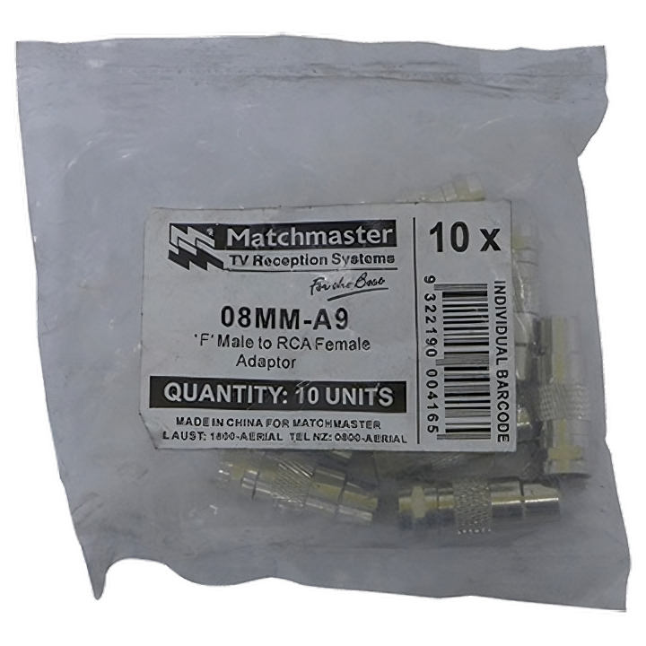 MATCHMASTER ADAPTOR RCA FEMALE TO F’ MALE (10 Pack) : 08MM-A9