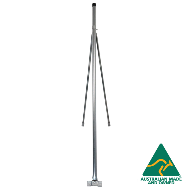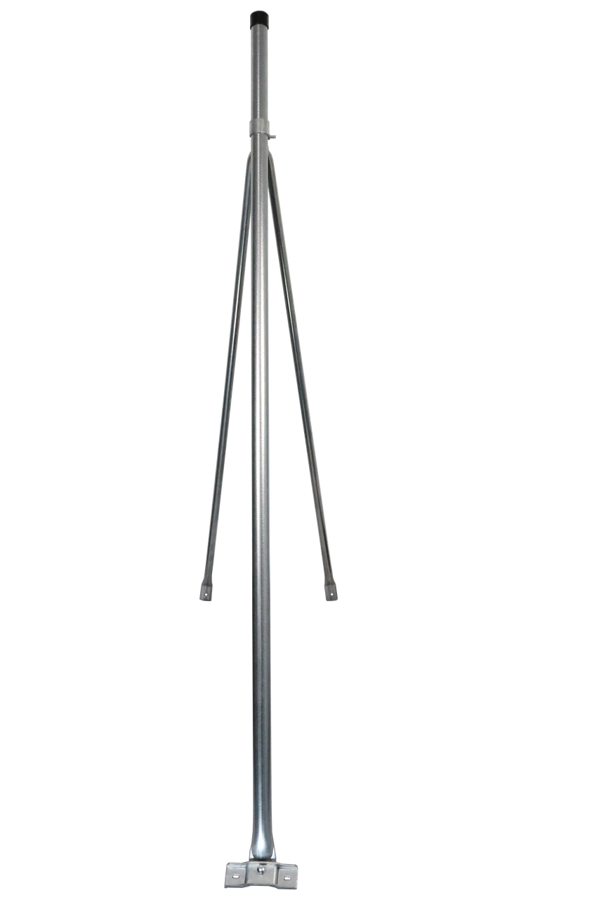 It has a 1.4m mast and the mount is to be fixed to the timber roof purlins through the crests of the corrugated profile.
