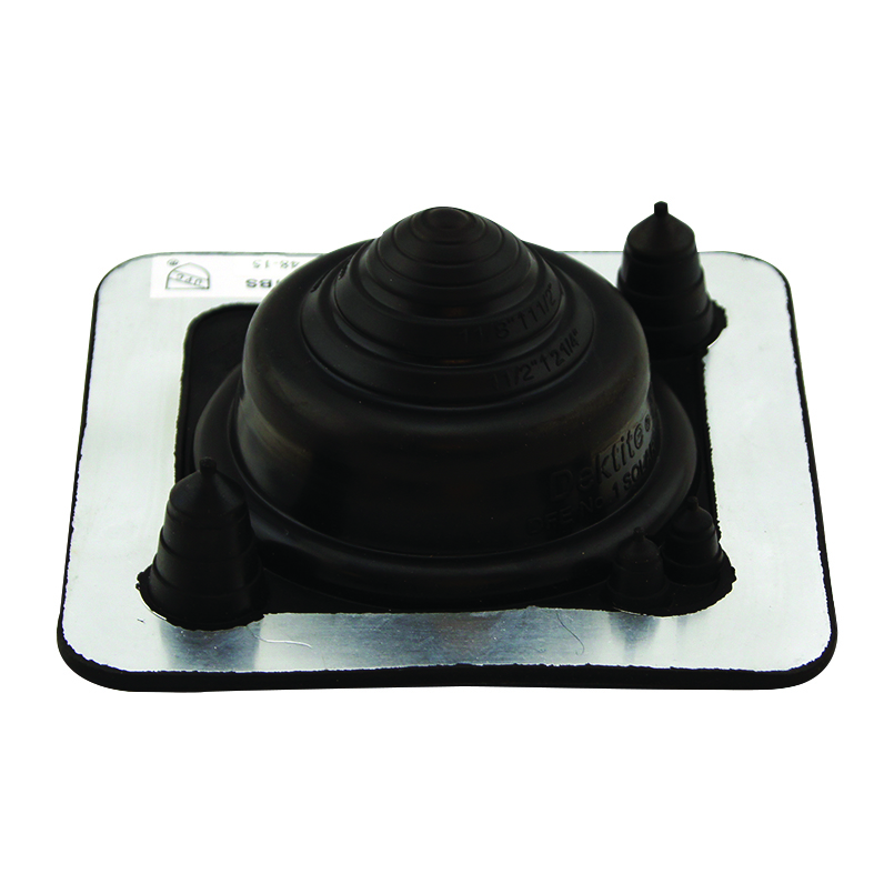 The DFE101BS dektite is a premium quality EPDM rubber, rated for up to 115?C. This dektite comes with two ports suitable for antenna and solar cables. Including a reinforced aluminium frame around the base, designed to mould to multiple roof profiles. UV rated, durable, lead free with minimal tools required for installation allowing 5-55mm penetration.