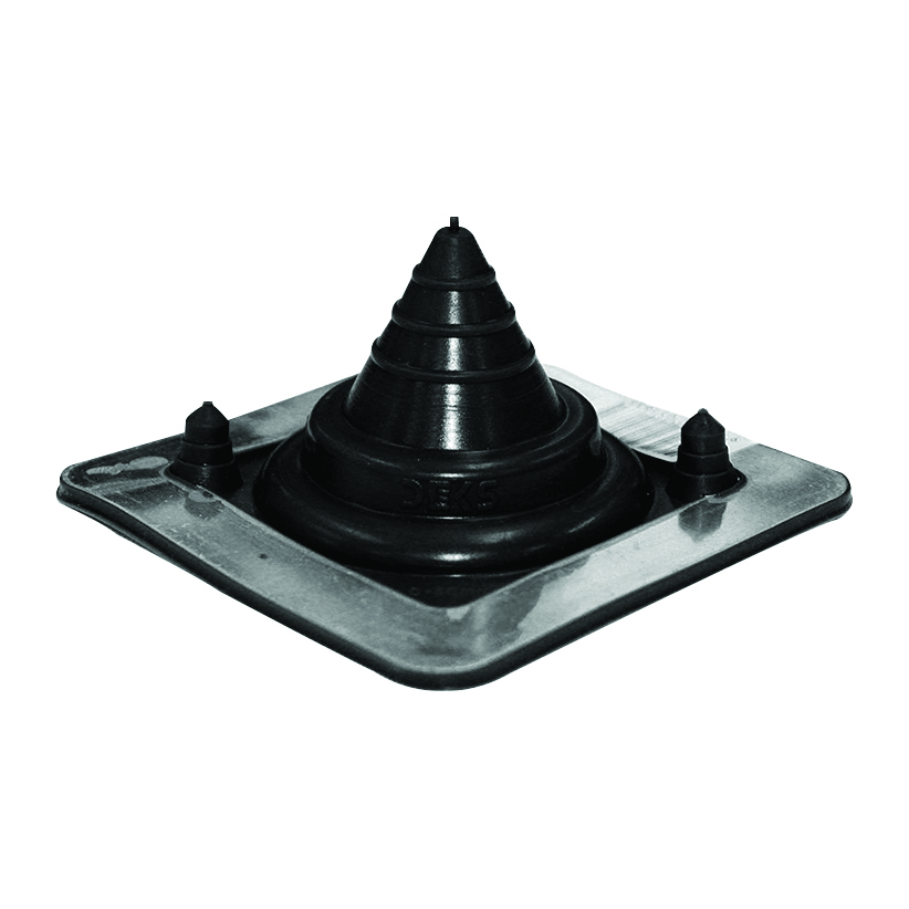 The DFE100BS dektite is a premium quality EPDM rubber, rated for up to 115?C. This dektite comes with two ports suitable for antenna and solar cables. Including a reinforced aluminium frame around the base, designed to mould to multiple roof profiles. UV rated, durable, lead free with minimal tools required for installation allowing 0-35mm penetration.