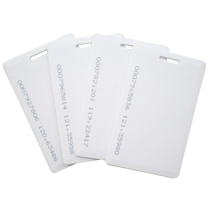10 pack of thick 125KHz RFID proximity cards with lanyard loop hole for access control systems.